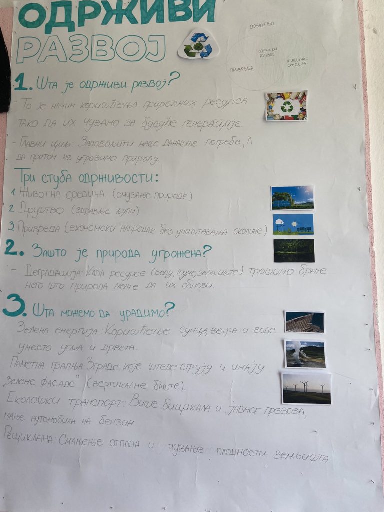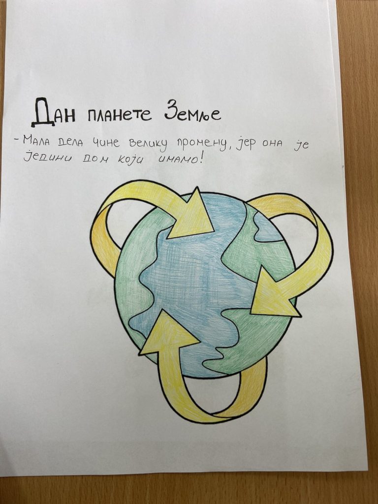 22.Априла обележили смо међународни дан планете Земље, који представља глобални догађај посвећен подизању свести о важности очувања животне средине. Ученици 6. и 8. разреда имали су разне активности, презентације на тему обновљивих извора, климатских промена, рециклаже, заштите животне средине, загађењу ваздуха, где су са наставницом Емилијом Достовић Манчић детаљно прошли кроз све теме. Мала дела чине велику промену јер она је једини дом који имамо.